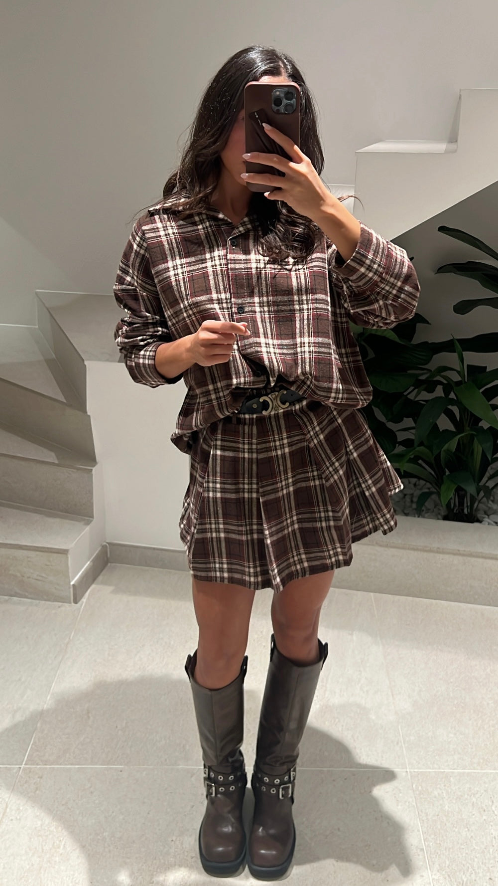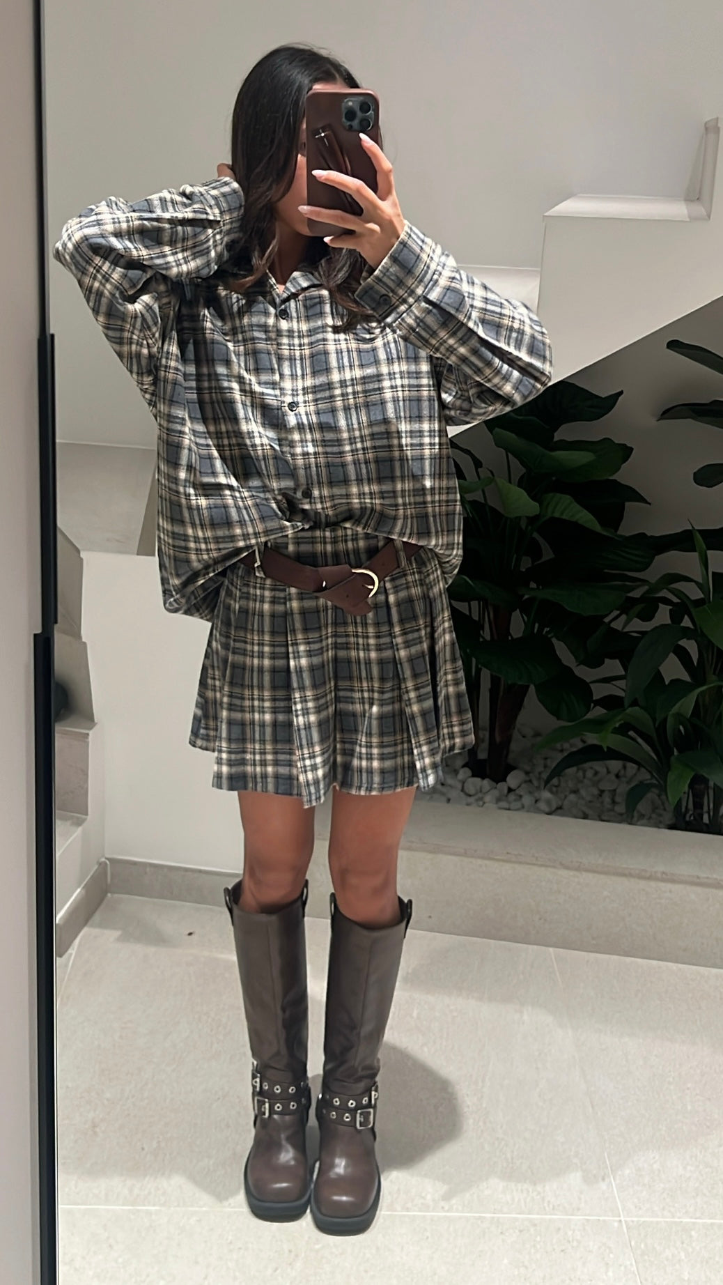 Jupe plissée courte à carreaux